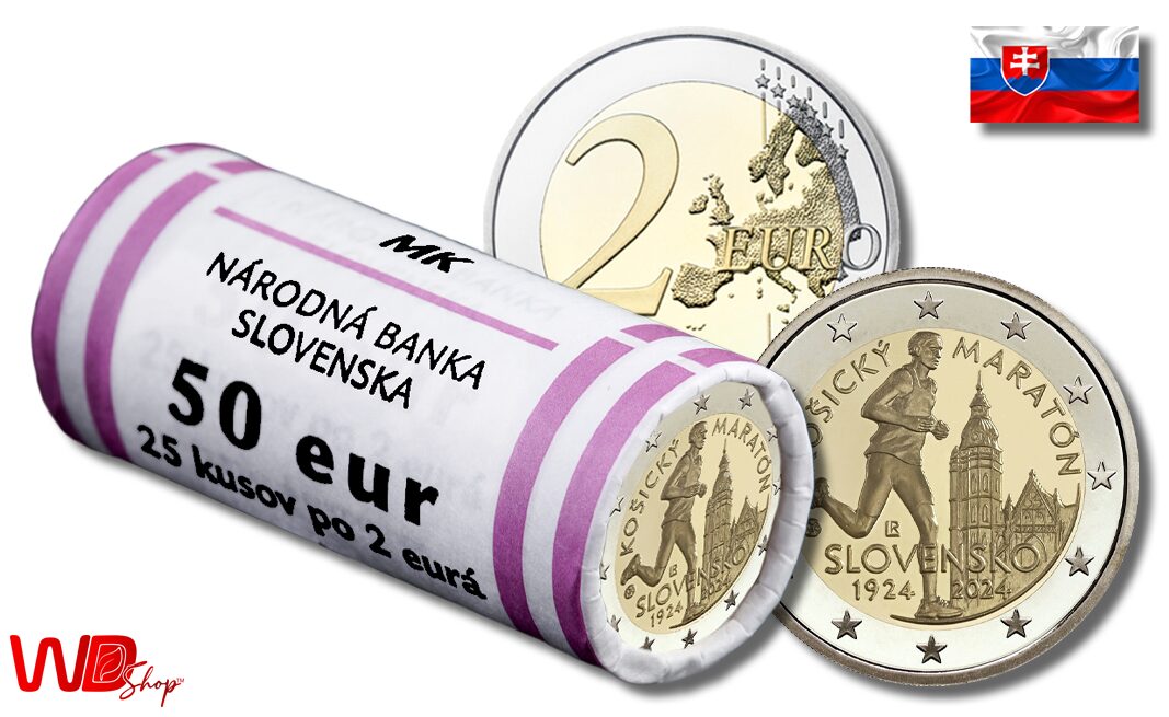 ![<span style="color: #808080;"><small>Slovensko/Slovakia </small></span><br/> 2 EURO – <b>100. VÝROČIE ZALOŽENIA MEDZINÁRODNÉHO MARATÓNSKEHO BEHU V KOŠICIACH</b> – <strong style="color: #ff0000;">UNC</strong> [2024] – <strong style="color: #ff0000;">ROLL (25x)</strong>](https://www.wdshop.eu/wp-content/uploads/2024/09/2ROLL-24-01.jpg)
