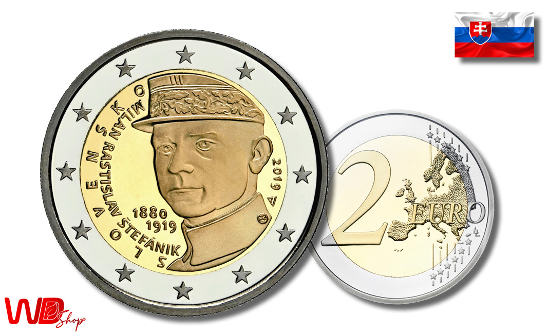 2 EURO 100. VÝROČIE ÚMRTIA MILANA RASTISLAVA ŠTEFÁNIKA – UNC | Slovensko/Slovakia 2019