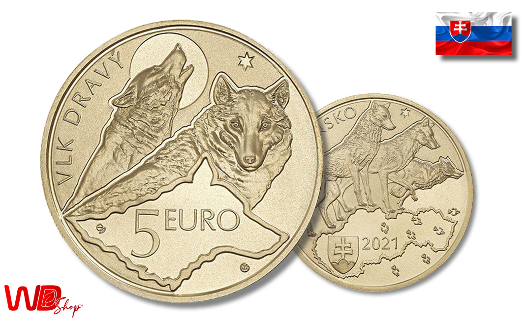 5 EURO FAUNA A FLÓRA SLOVENSKA – VLK DRAVÝ – UNC | Slovensko/Slovakia 2021