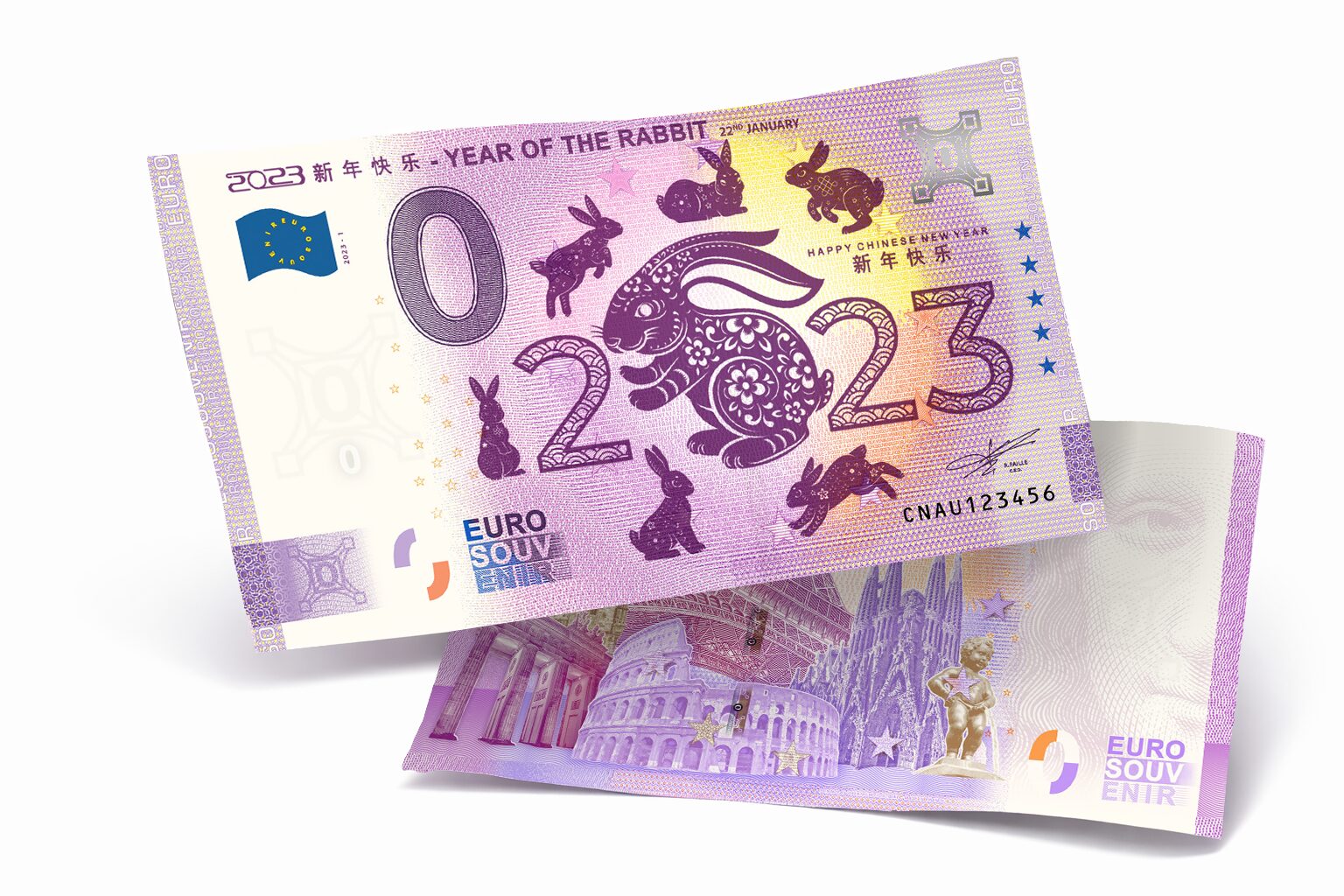 Euro Souvenir Čína/China 2023 – 2023 新年快乐 – YEAR OF THE RABBIT 22nd January