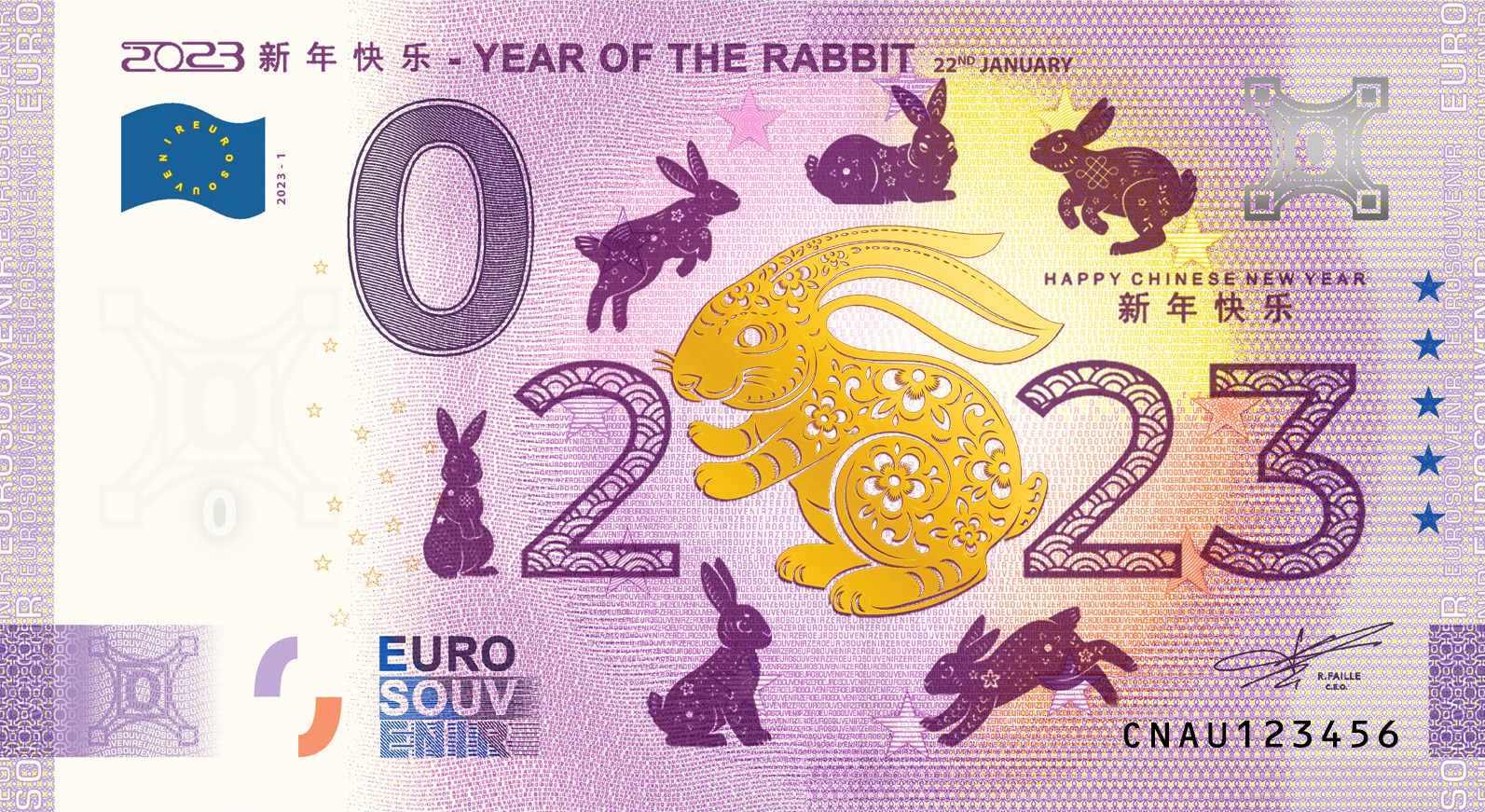 Euro Souvenir Čína/China 2023 – 2023 新年快乐 – YEAR OF THE RABBIT 22nd January – PRÍTLAČ/IMPRINT