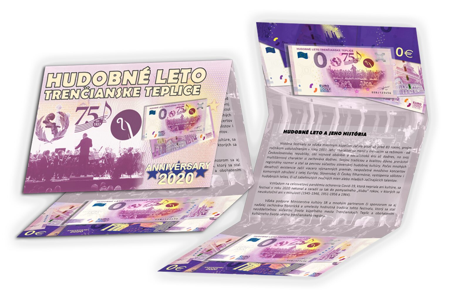 ● 1x issue Euro Souvenir HUDOBNÉ LETO TRENČIANSKE TEPLICE EEBJ 2020-2 ANNIVERSARY (numbered: 009801-009900).