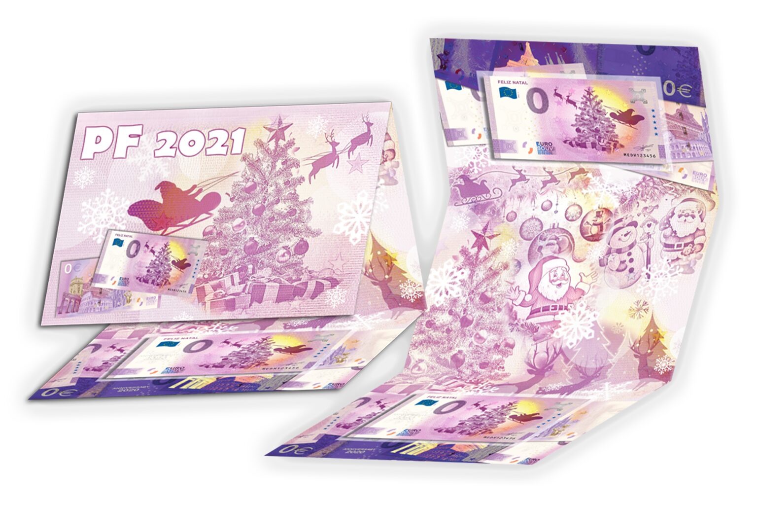 Oficiálny folder PF 2021 FELIZ NATAL (set troch Euro Souvenir bankoviek) obsahuje: