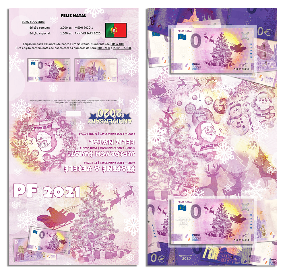 ● 1x vydanie Euro Souvenir FELIZ NATAL MEDH 2020-1 ANNIVERSARY (číslovanie: 002801-002900).