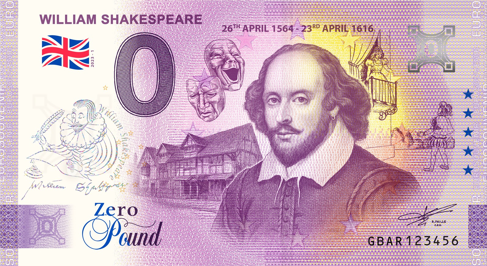 ![<span style="color: #808080;"><small>Euro Souvenir #WD014M1</small></span><br/> <b>WILLIAM SHAKESPEARE</b> – <strong style="color: #800080;"><small>PRÍTLAČ/IMPRINT</small></strong> [2023] – Obrázok 4](https://www.wdshop.eu/wp-content/uploads/2023/04/GBAR2023-1_holograph.png)