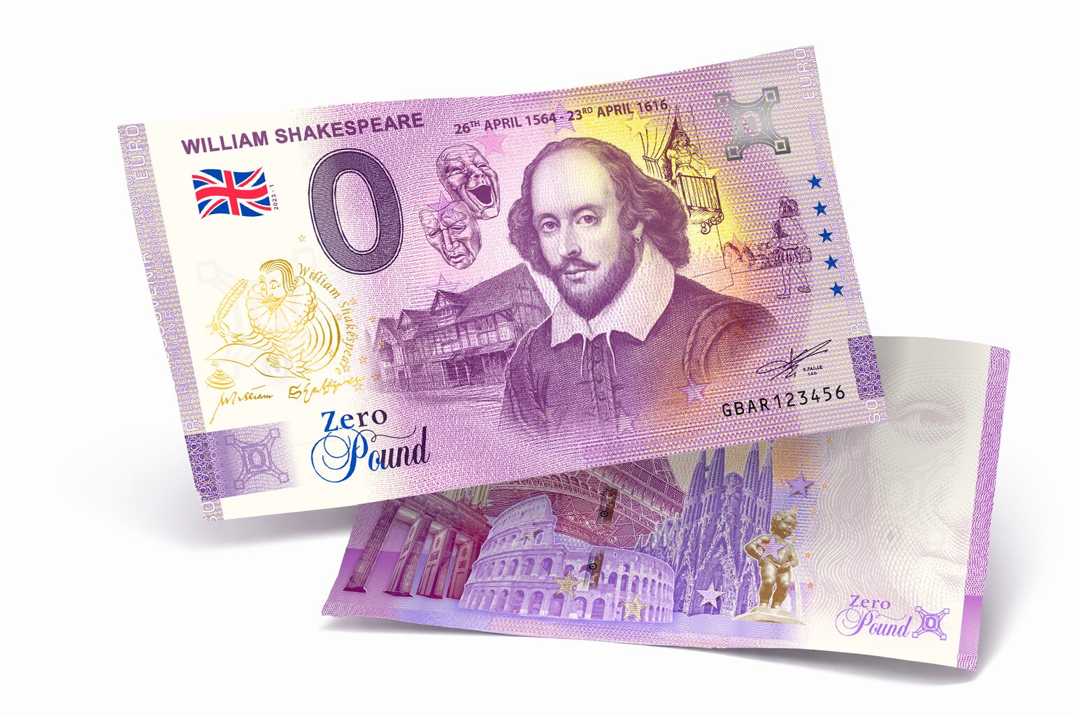 ![<span style="color: #808080;"><small>Euro Souvenir #WD014M2</small></span><br/> <b>WILLIAM SHAKESPEARE</b> – <strong style="color: #800080;"><small>PRÍTLAČ/IMPRINT</small></strong> [2023] – Obrázok 2](https://www.wdshop.eu/wp-content/uploads/2023/04/GBAR2023-1_G.jpg)